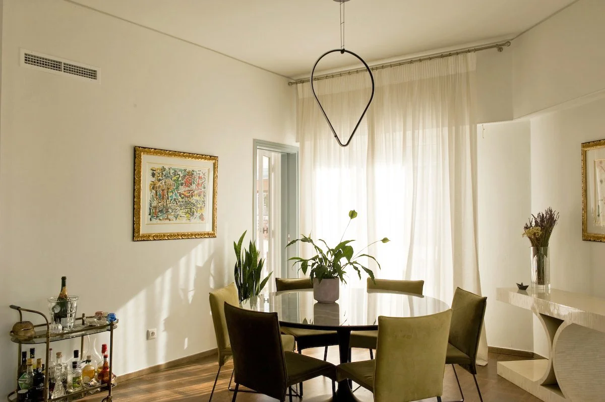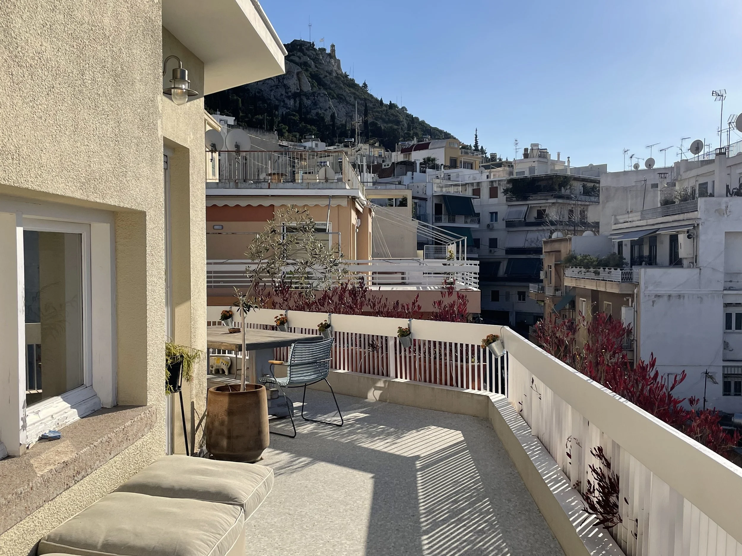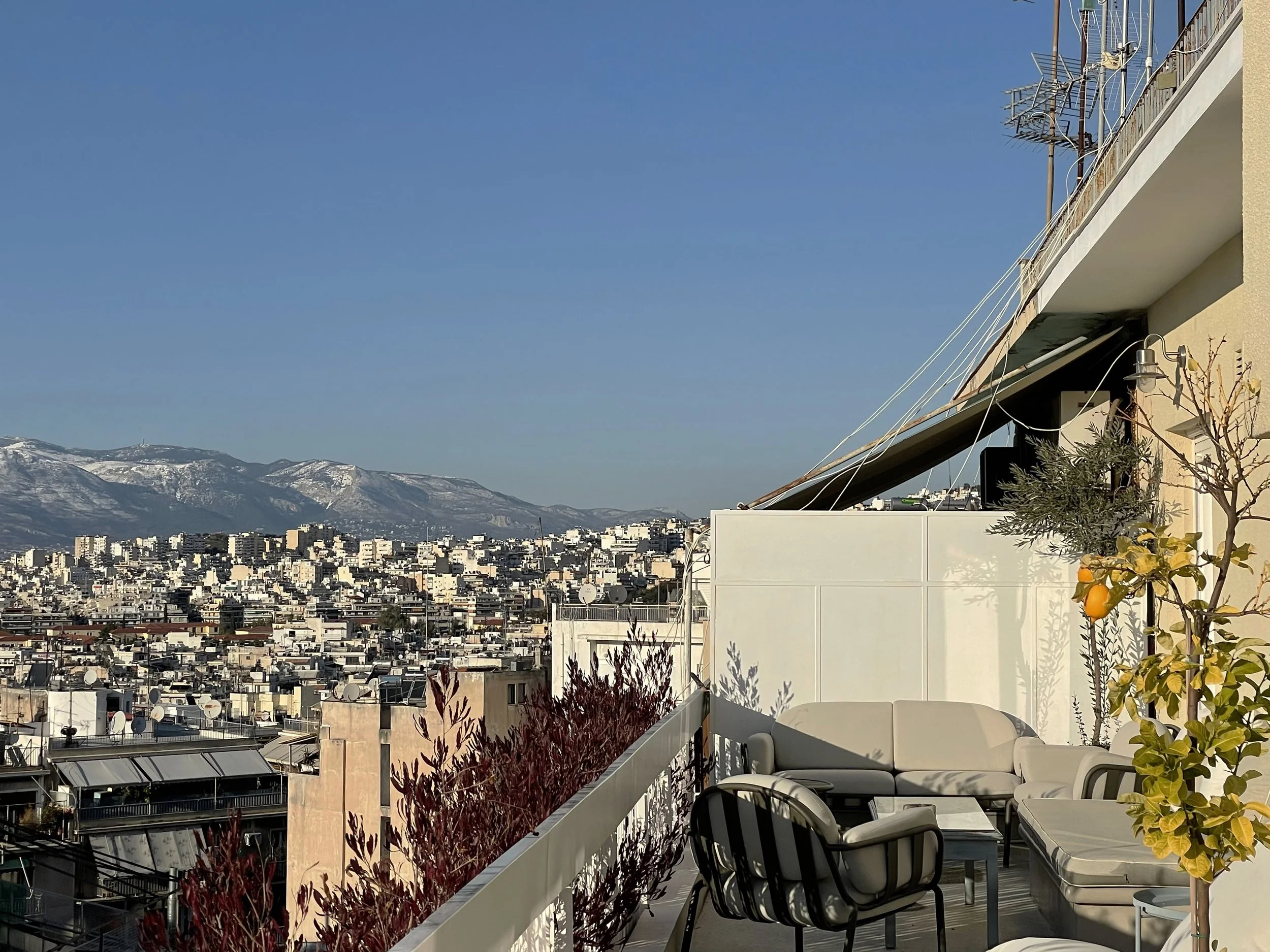 Experience the best of Athens in sun-drenched 150m penthouse on the foothills of Lykavittos. The vibrant neighborhood of Neapoli straddles (geographically and stylistically) chic Kolonaki and edgy Exarcheia in the center of Athens. The home comfortably sleeps five with two king bedrooms, one full bathroom, one W.C. and a library outfitted with a daybed.